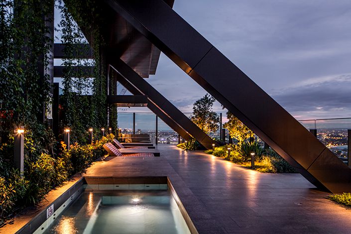The Sky Garden rests lightly on a huge cantilever extending 40 m from the facade of One Central Park's East Tower. It's an urban oasis high above the city, with an expansive terraced deck with a Jacuzzi, outdoor dining and comfortable sun loungers, to be enjoyed by an exclusive few.
