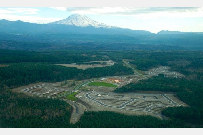 A large-scale community development project is underway in an extensive area that spans about 19 km². The development site enjoys a magnificent view of Mt. Rainier, and is conveniently accessible in 40 minutes from the airport by car. A business park, as well as residential lots of various designs are being developed, which will create a large number of employment opportunities. The community has successively ranked first in the number of houses sold in this district in recent years. This project, designed to create a sustainable society, received a three-star rating from the Built Green Program, a group promoting eco-friendly building practices. This is the best rating for community development projects.